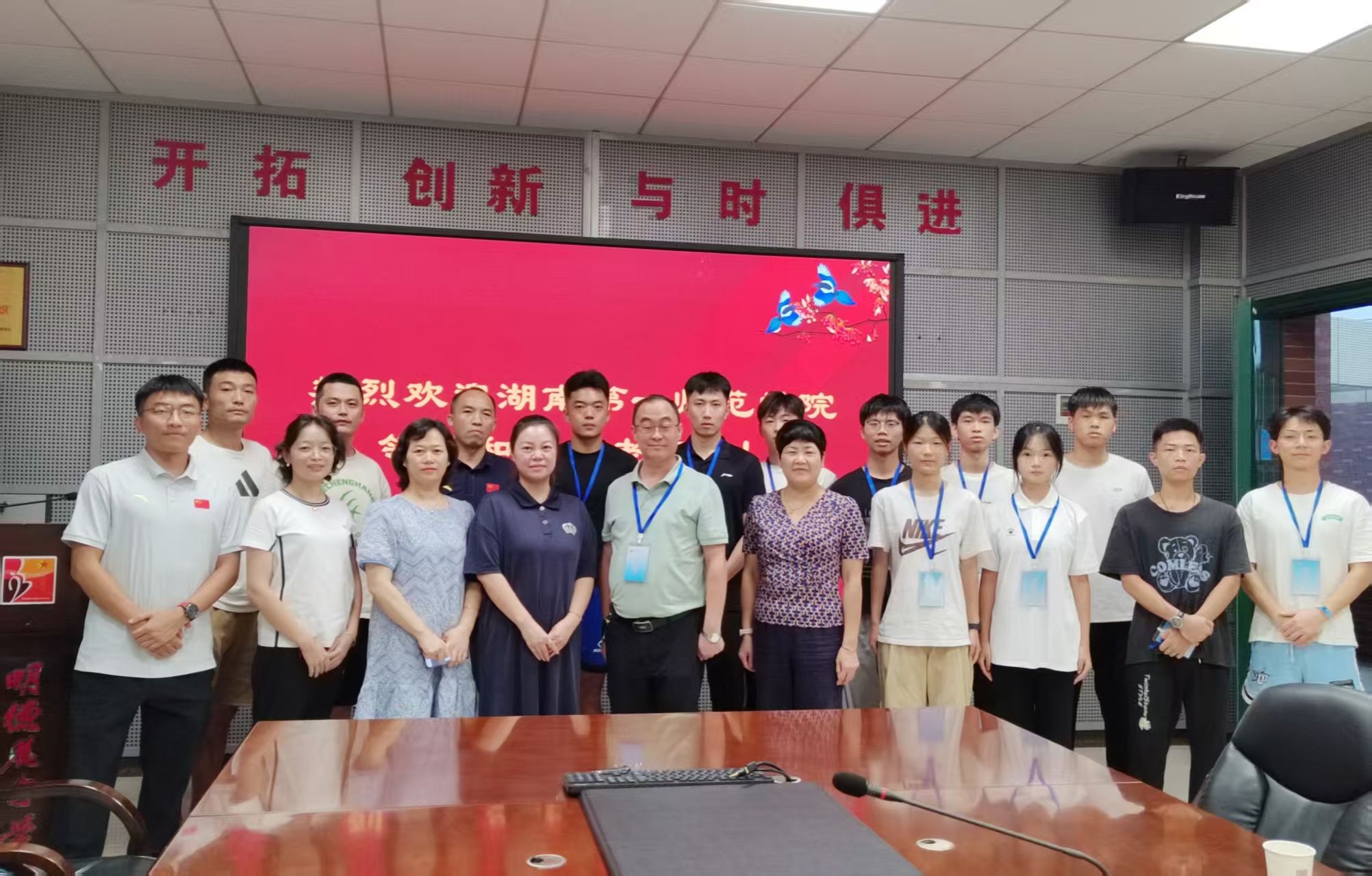 师生的到访表示热烈欢迎。校长乐炼围绕学校办学特色、发展概况与教育理念作分享,并介绍实习生将由学校体育教师以“一对二”的“导师制”模式,为每位实习生提供精准、专属的教学指导。明德麓谷学校教务处主任朱智慧就实习期间的具体工作安排、教学规范要求及安全注意事项作详细说明,为实习生厘清实践方向。