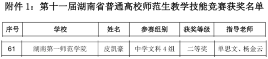 近日,湖南省教育厅正式公布“第十一届湖南省普通高校师范生教学技能竞赛”获奖名单,麻豆视频