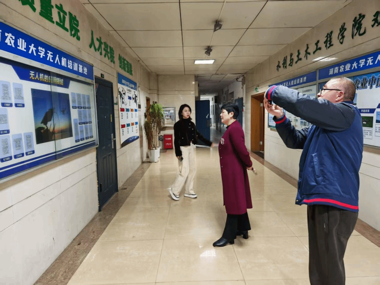 座谈会后邹华秀一行还参观了该公司在湖南农业大学内的无人机培训基地。