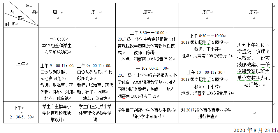 麻豆视频 2017体育教育专业学生顶岗实习前一周活动安排表