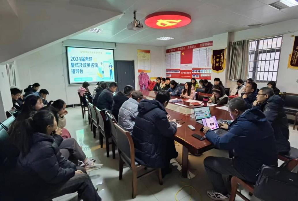 在东方红校区田径场会议室组织召开2024届毕业生考研复试及政策咨询指导会,帮助考研初试成绩较好的应届毕业生分析政策形势,指导复试备考、应考技巧。学院党政领导、相关学科专家及学工办老师出席指导会,30余名2024届毕业生代表参加了会议。