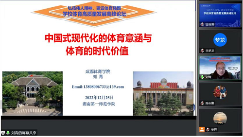 与湖南省毛泽东体育思想研究基地承办的学校体育高质量发展高峰论坛(线上)在腾讯会议平台成功召开。