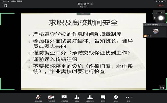 党总支副书记朱建伟、学工办主任纪鑫主讲,腾讯会议线上授课。