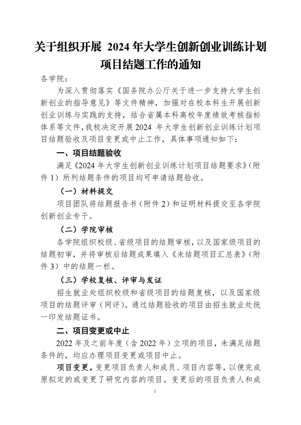 关于转发《关于组织开展 2024年大学生创新创业训练计划结题验收工作的通知》的通知