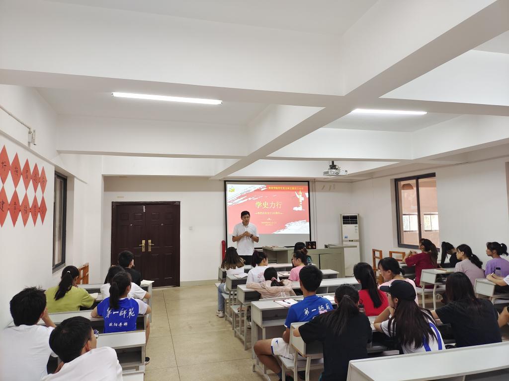 学生党支部在体育馆多媒体教室开展了以“学史力行”为主题的党员教育活动,学生党支部全体党员积极参加并主动学习,此次活动由学生党支部书记纪鑫同志主持。