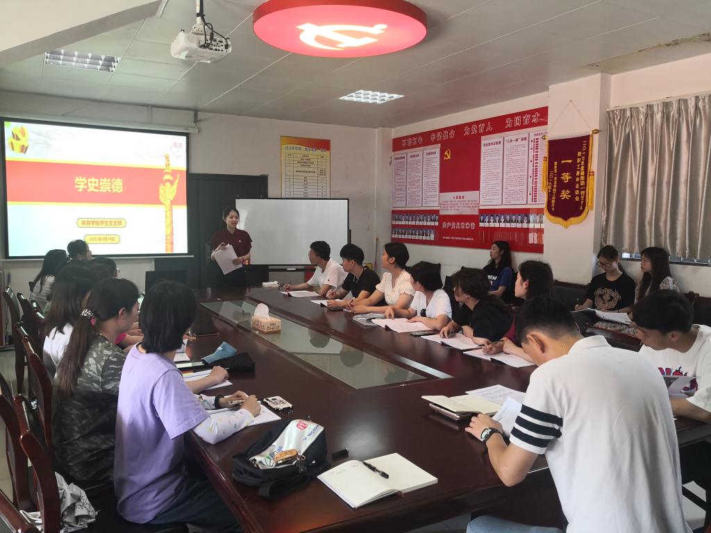 学生党支部在田径场会议室开展“学史崇德”主题党日活动。学生党支部书记纪鑫、宣传委员唐智鹏、组织委员朱慕雅以及学生党员二十余人参加了本次活动。