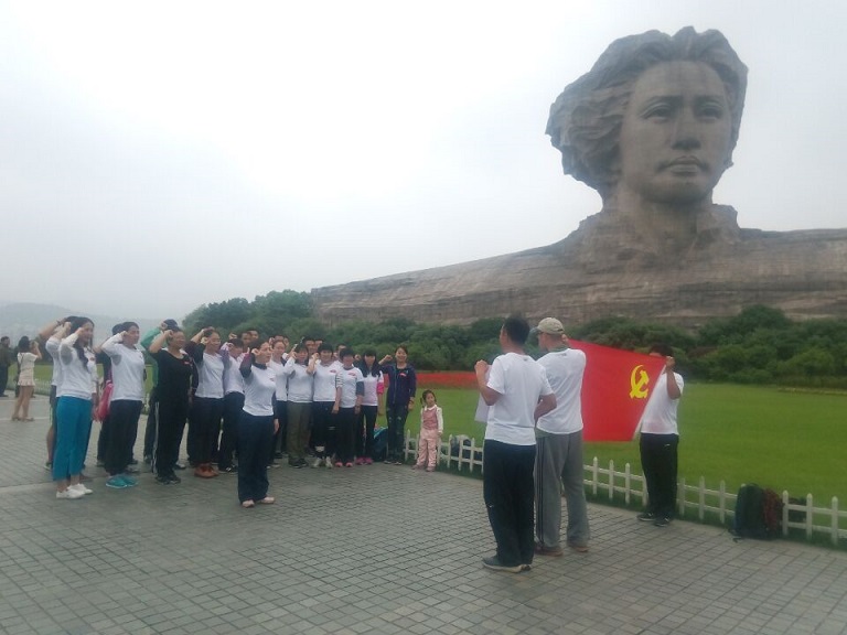 在长沙桔子洲开展了教职工竞跑活动及全体党员教师重温入党誓词活动。