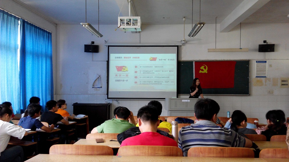 党总支在东方红校区文B102教室开展了“落实‘两学一做,争做‘五美’党员”的专题党课学习。党课由院党总支书记袁向荣主讲,全院师生党员参加了学习。