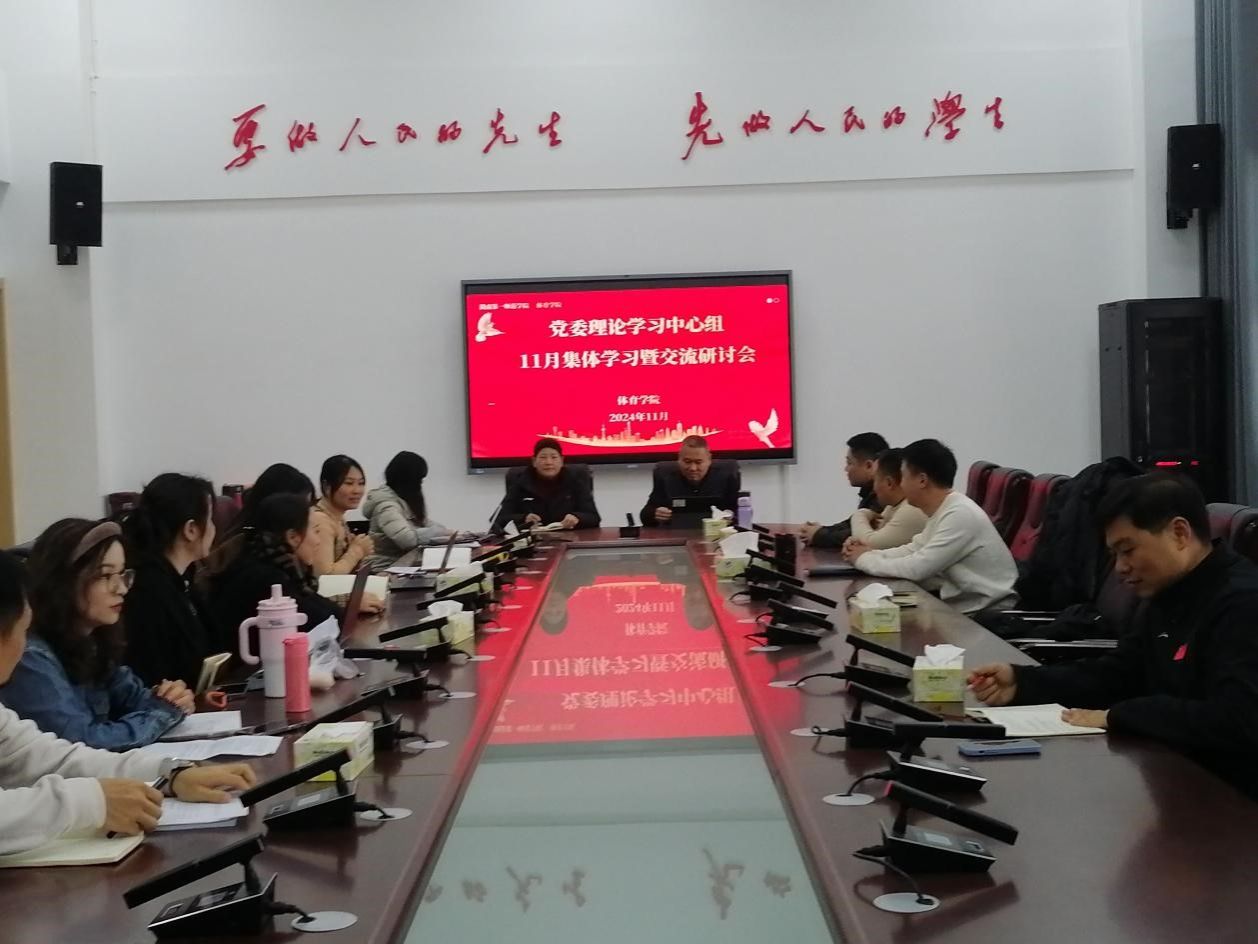 11月28日,学院党委理论学习中心组在综合体育馆会议室举行11月份集体学习和交流研讨会。学院党委书记邹华秀主持学习会,学院党政班子成员、各党支部书记、“三办“主任参加了集体学习和交流讨论。