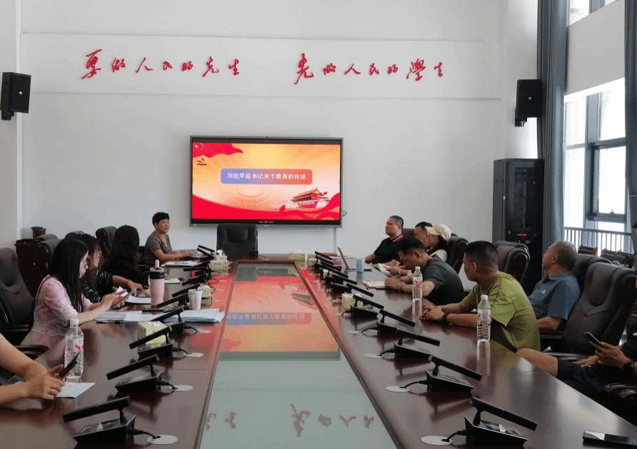 组织全体教师在综合体育馆会议室学习习近平总书记关于教育的重要论述,院长李梦龙主持会议。
