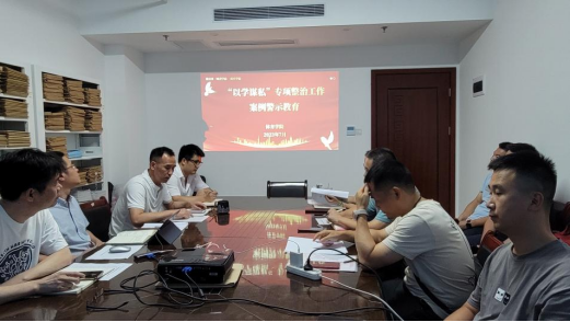 师德师风学习教育资料》。李梦龙院长领学了《习近平总书记关于师德师风的重要论述摘编》相关内容,重点解读了总书记号召广大教师要做“有理想信念、有道德情操、有扎实学识、有仁爱之心”的“四有”好老师重要讲话精神。刘大维副院长领学了“教师法律法规及政策文件”相关内容,着重解读了《新时代高校教师职业行为十项准则》等规定。朱建伟副书记领学了《师德师风典型案例》节选内容,重点通报了近年来省内外个别高校教师在招生、考试、学生推优等工作中徇私舞弊及篡改学生成绩、泄露试题内容等反面典型案例。罗婉红副院长结合“校园清朗净化行动”要求,敦促大家积极展开学术论文自查工作,并号召大家暑期“半休半学”,积极开展科学研究、申报科研项目。
