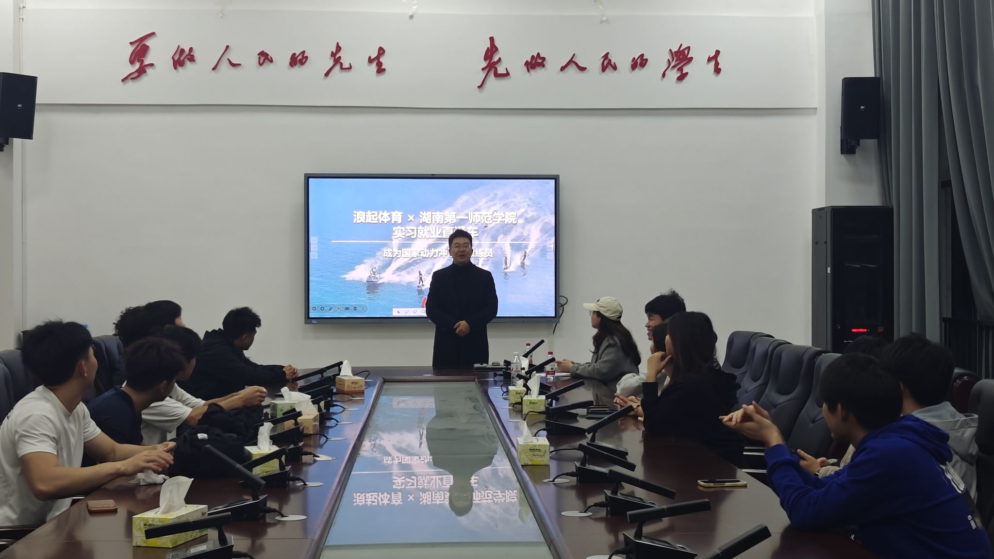 特邀浪起体育科技有限公司走进校园,开展了一场别开生面的新兴体育运动项目——水上动力滑板专场招聘宣讲会。学院分团委书记、就业专干唐智鹏老师,户外专业导师杨彬老师、刘娟老师全程陪同,与26名相关专业学生共同参与此次招聘活动。