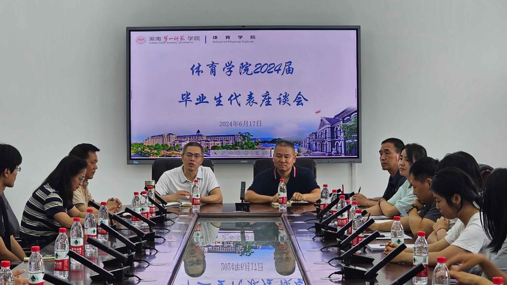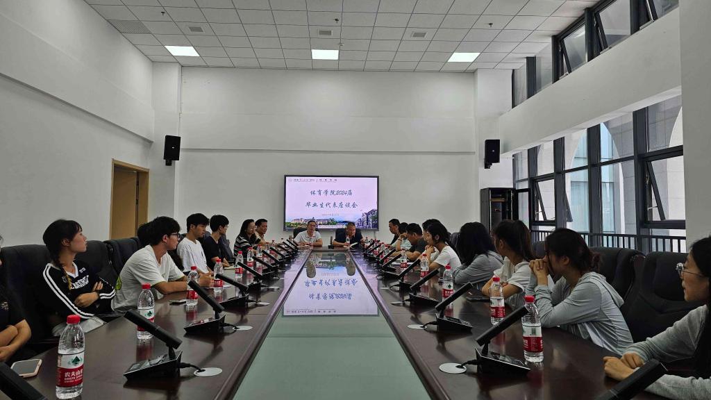 在东方红校区体育馆会议室召开2024届毕业生代表座谈会。学院全体党政领导、专职组织员、教科办、学工办、分团委负责人参加会议,与30余名2024届毕业生代表共话成长收获、共叙师生情怀、共展美好愿景。