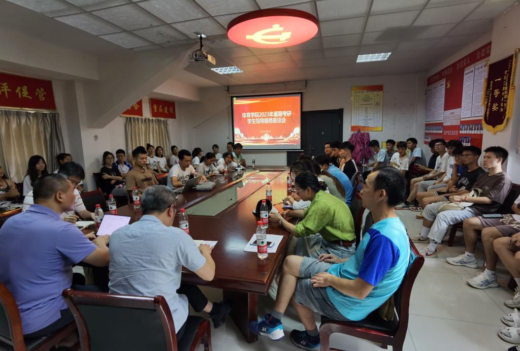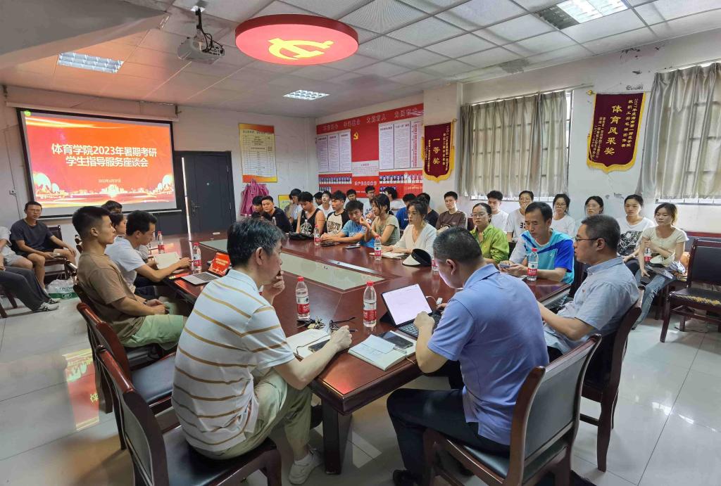 “2023年暑期考研学生指导服务座谈会”在田径场会议室召开。学院党政班子成员、学工办、教科办及考研集中班班主任与53名集中备考的2020级学生齐聚一堂、各抒己见,共商共谋应届毕业生考研升学大计。