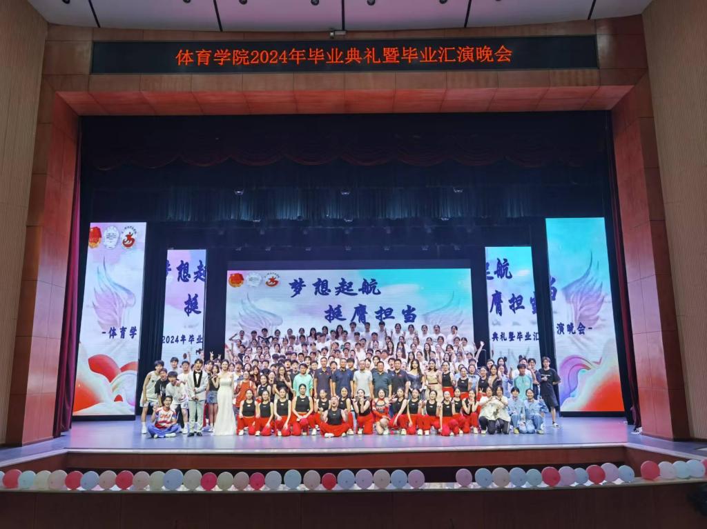 毕业典礼接近尾声,罗祥云书记宣布麻豆视频 2024年“梦想启航,挺膺担当”毕业汇演晚会正式开始,各专业班为24届毕业生们精心准备的节目精彩纷呈。晚会结束后,毕业生们上台与领导、老师们合影留念,他们将带着母校的祝福与期望,踏上新的人生旅程,在体育领域以及其他各行业中,以坚定的信念和不懈的努力,书写属于自己的辉煌篇章。