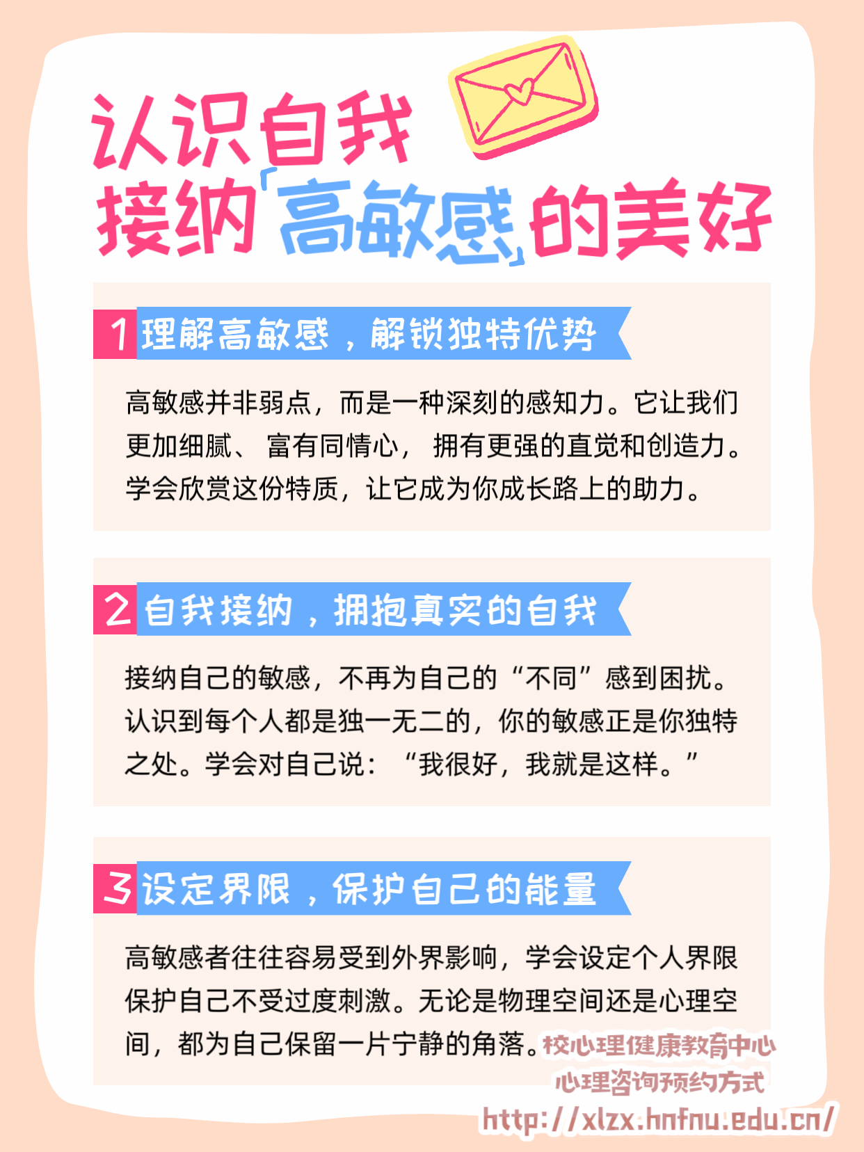 心理健康教育中心与各公寓管理部门紧密合作,精心策划了每月海报宣传栏的内容。围绕不同主题,如“心理热线宣传”“高敏感人格”“人际交往技巧”等,设计了一系列富有创意、易于理解的海报。每次更新前,心理健康教育中心都会通过问卷调查、学生反馈等方式了解当前学生关注的热点心理问题,确保海报内容贴近学生实际需求。这些海报不仅包含心理健康知识,还融入了励志故事、心理测试小游戏等互动元素,吸引学生驻足观看。