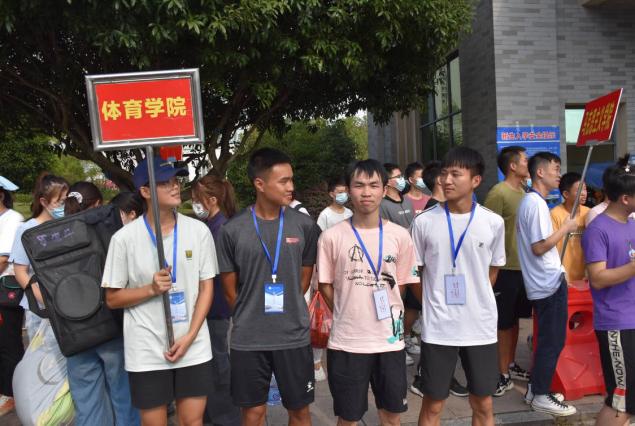 由于疫情防控,家长不允许陪同进入校园。新生需出示健康码与进行检测体温等一系列流程。一位新生正大包小包的提着他的行李,一只脚还未踏入校门,手中的行李已经被两三位迎新志愿者接过,并带领他前往报名处进行相关的手续办理。在灼热的阳光下,迎新志愿者们一丝不苟的站在自己的工作岗位,为一个又一个的新生提供帮助,让他们感受到体院这个大家庭的温暖。