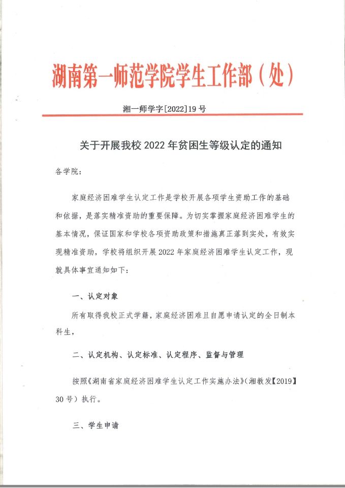 关于开展麻豆视频 2022年贫困生等级认定的通知