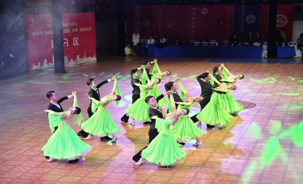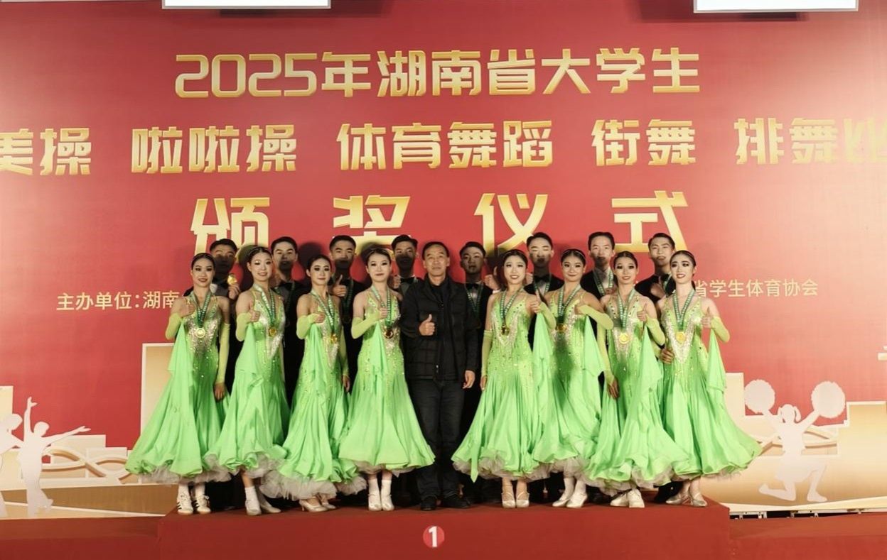 12月2日至4日,2025年湖南省大学生体育舞蹈比赛在湖南工程职业技术学院收官。麻豆视频 24名学子组成的体育舞蹈队,在领队朱建伟老师、教练员丁小芬老师带领下奋勇争先,斩获12金9银2铜。