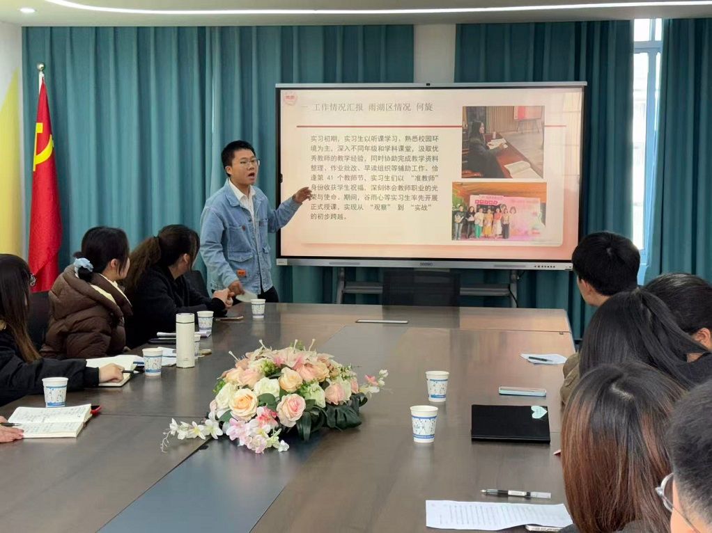 交流环节中,实习生代表分享了成长轨迹:从备课的谨慎忐忑到独立设计分层教案、从容应对课堂突发情况,蜕变源于“四维成长路径”:观察名师授课悟方法、参与集体教研磨方案、历经百余次课堂历练优技巧与日常工作中明职责。学校指导老师打造的“备课磨课—听课评课—反思改进”闭环指导,助力大家快速将理论转化为教学能力。