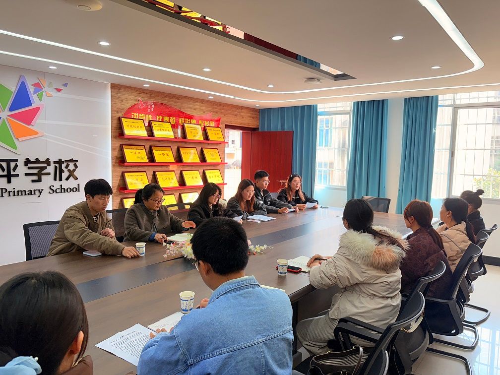 竞赛与管理中心主任周柏玉、体育教育专业教研室主任单思文、实习指导老师刘丽、宦丽与风车坪小学屈丹校长、师淼淼副校长、陈文老师、各组实习队组长及实习生代表齐聚一堂,共忆实践历程,共话教育担当,共商成长路径。