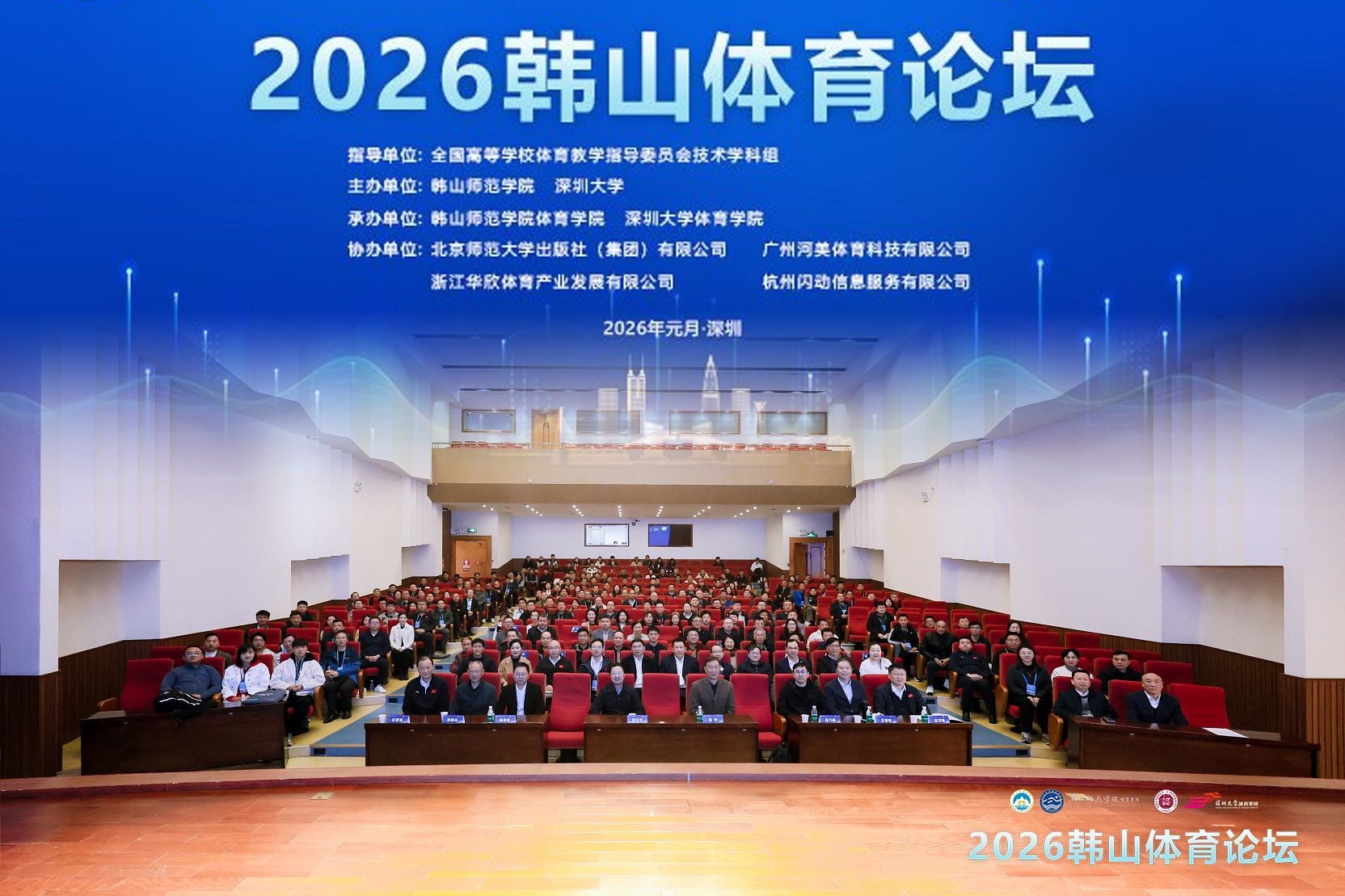 联合主办、全国高等学校体育教学指导委员会技术学科组指导的“2026韩山体育论坛”在深圳大学成功举办。论坛汇聚全国体育领域专家学者与高校体育教育骨干力量,我院李梦龙院长、谭飞主任、单思文主任受邀参会,深度参与学术研讨与交流。