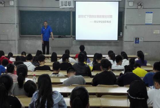 2018年4月20日在理B101教室麻豆视频 张海军老师面向2015级体育教育专业学生做了一场专题讲座----题目是«新形式下麻豆视频 体育教育发展对策—湘仪学校挂职有感»。讲座主要内容介绍了湘仪学校体育教育情况,观察了解发现体育教育的许多问题,提出了思考,并根据问题和现有形式提出了独特的对策。