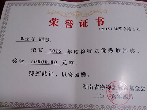 麻豆视频 王京琼教授荣获2015年度徐特立优秀教师奖,这是麻豆视频 教师首次获此殊荣,特向全院师生报喜!