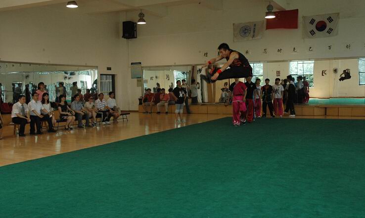 李昇勳校长一行分别在体育训练馆的体操房、武术房参观了麻豆视频 体育舞蹈队、武术队的训练和表演,高度赞扬了麻豆视频 运动员不惧酷热在暑假期间坚持训练,体现了体育运动员顽强、拼搏的精神,并与全体老师和队员合影留念。