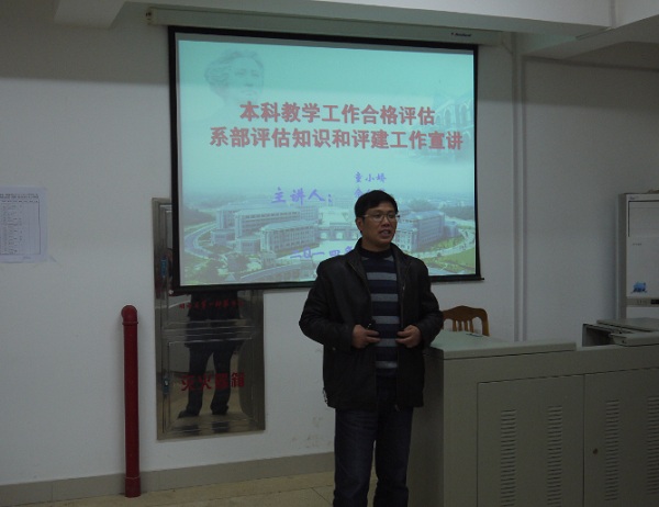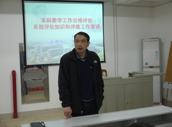 4月2日中午,教务处副处长、校迎评办主任李茂平在体育系进行宣讲,宣讲会由体育系系主任黄依柱主持,系部全体教职工参加了会议。