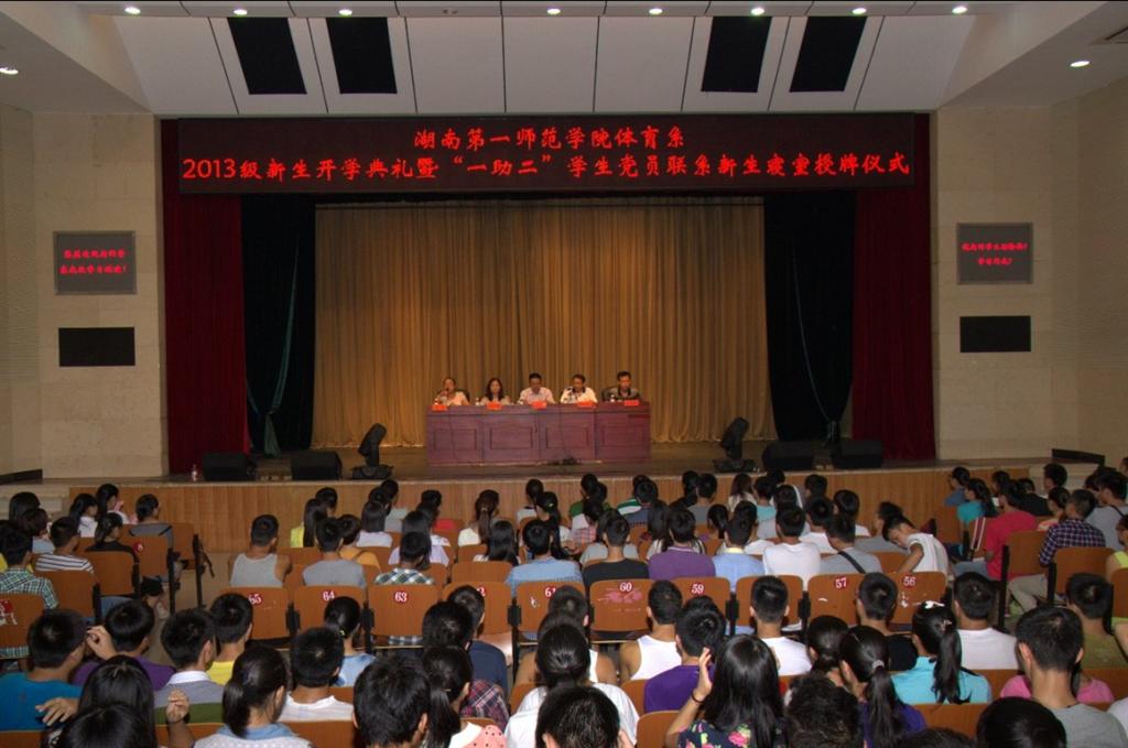 ——体育系2013级新生开学典礼暨“一助二”学生党员联系新生寝室授牌仪式隆重举行