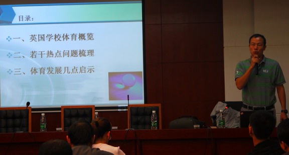 10月16日下午,华中师范大学黄爱峰教授作题为《英国学校体育概括及启示》的专题讲座,黄教授以英国与中国体育活动开展对比的形式与大家交流,对英国的体育情况介绍使大家在理念上有了提升,讲授很实用、很真切,黄教授提倡我们用多思维、多角度地观点去思考问题,让大家开阔了眼界,活跃了思维,受益匪浅。