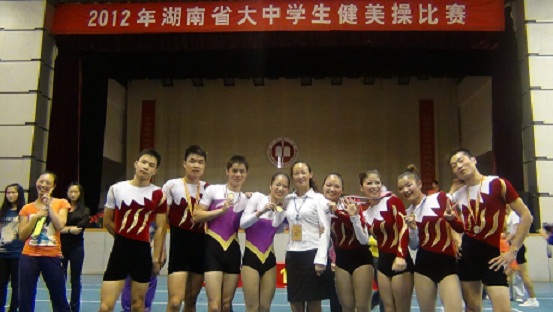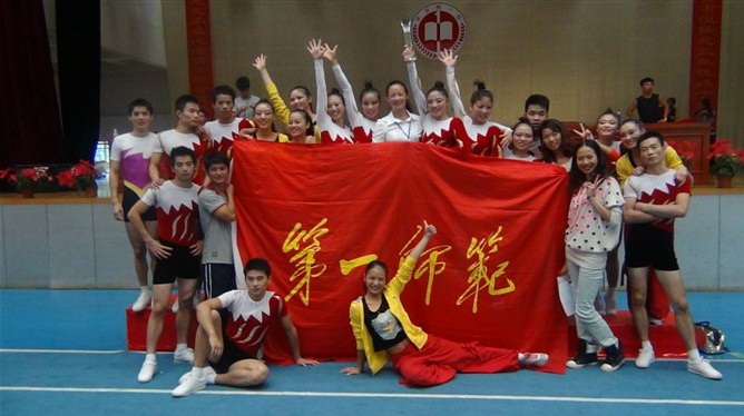 健美操队在总教练王京琼教授带领下,参加了全部9个项目的比赛,以绝对优势荣获团体总分第一名,单项比赛获6金3银的优异成绩。其中自由舞蹈啦啦操、女子六人、女子三人、混合双人、男单、女单均获金牌,六人轻器械、男子六人和男子三人均获银牌。