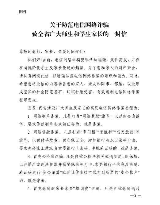 关于防范电信网络诈骗致全省广大师生和学生家长的一封信--湖南省教育厅