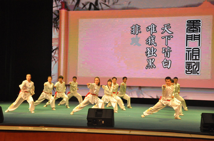 武术代表队以秦时明月为情境,全套武术表演,演绎精湛,展示了以匡扶正义和保卫国家为目的的武术修习内涵,诠释了自强不屈的的民族精神;邵阳学院以“武魂”为主题的表演,为大家展示了双节棍、双刀等十八帮武艺,既展现了武术的舞蹈美,也不乏武术的战斗性;吉首大学武术队以“太极”为主题,表演者技法娴熟、炉火纯青,以武术为技法展现了天、地、人之间的高度融合,很好地诠释了道法合一、运通自如的“道”之境界和武术修习者之精神。