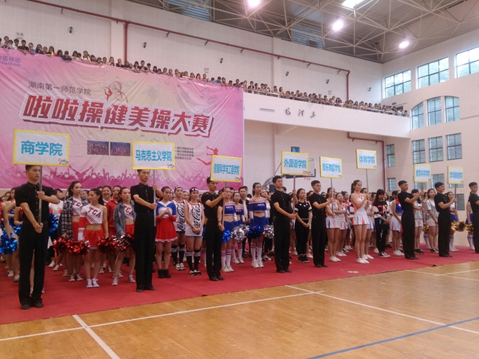 第四届啦啦操健美操大赛在东方红校区体育馆隆重举行。校领导彭小奇、肖湘愚、童小娇及部分二级学院和职能部门的负责人出席了开幕式并观看了比赛。