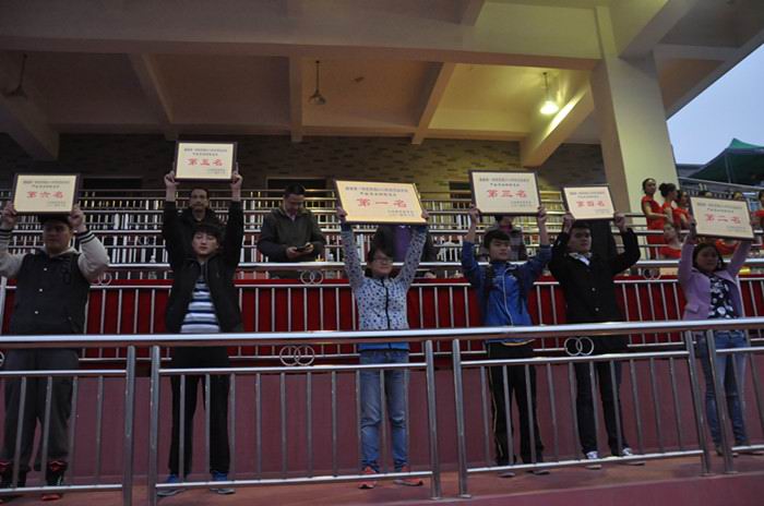 到会领导为获得本次田径运动会的团体和个人颁发了荣誉证书和奖牌。获得甲组男子团体总分前6名的是:数学与计算科学学院、美术与设计学院、教育科学学院、商学院、外国语学院、信息科学与工程学院;获得甲组女子团体总分前6名的是:外国语学院、数学与计算科学学院、教育科学学院、商学院、音乐舞蹈学院、文学与新闻传播学院;获得甲组男女团体总分前6名的是:数学与计算科学学院、教育科学学院、外国语学院、商学院、音乐舞蹈学院、美术与设计学院。获得乙组男子团体总分前4名的是:13级体育教育1班、13级体育教育2班、14级体育教育2班、14级体育教育3班;获得乙组女子团体总分前2名的是:13级体育教育2班、13级体育教育1班。