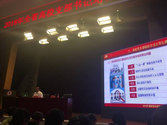 此次培训工作分专题培训和测试两个环节。上午,先后听取了中南大学组织部副部长罗永忠主讲的《怎样当好新时代高校党支部书记》、衡阳师范学院党委副书记刘福江主讲的《高校党支部设置标准化与组织生活正常化建设》、湖南理工学院副校长刘亦工主讲的《高校党支部管理服务精细化、工作制度体系化、阵地建设规范化建设》三个专题。下午,全体学员进行了培训测试。