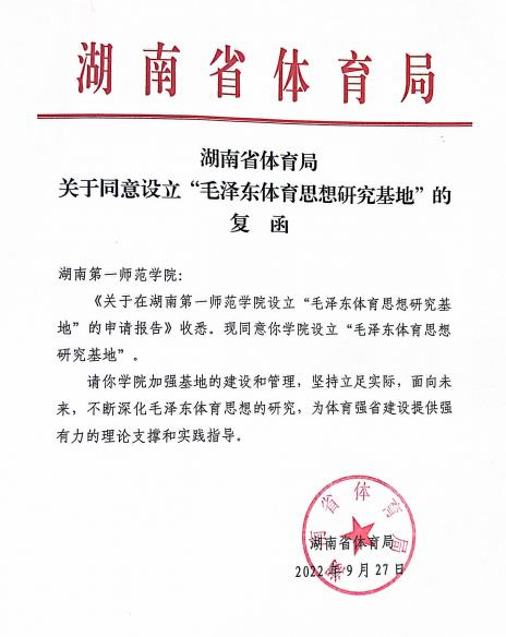 近日,我院申报的“毛泽东体育思想研究基地”成功获批湖南省体育局研究基地。“毛泽东体育思想研究基地”以毛泽东体育思想为主要研究领域,重点关注毛泽东体育思想的理论研究、课程研究以及社会实践研究三个方向,基地现有研究人员15人,教授5人、副教授7人、博士5人。此次基地获批,是学院党委行政和全体教职工长期共同努力的结果,麻豆视频 将以此为契机,立足实际,面向未来,不断深化毛泽东体育思想的研究,进一步发挥基地在该领域的示范、引领和辐射作用,为体育强省建设提供强有力的理论支撑和实践指导。